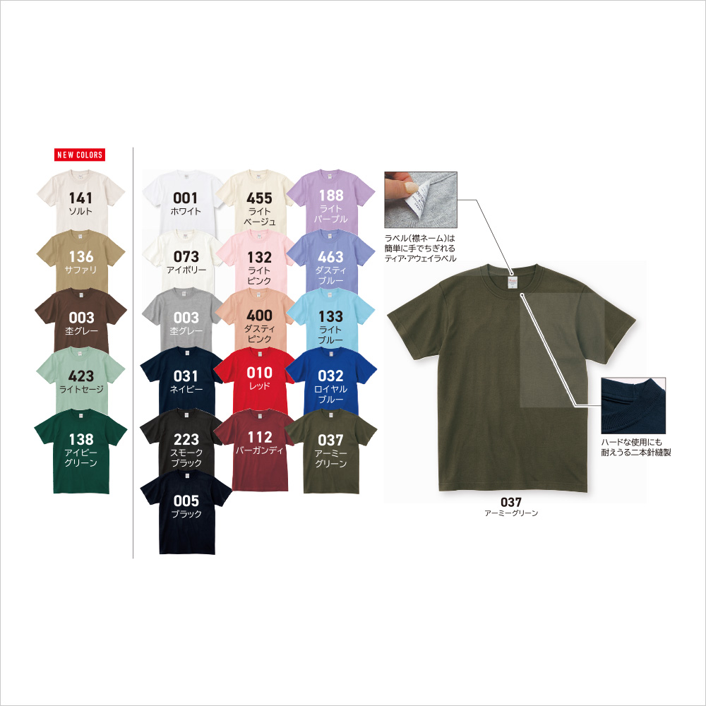 こちらの商品につきましては、一箇所一色プリント(特色以外)の料金が含まれております。その他の条件(特色≪金・銀・蛍光カラー≫プリント、2箇所以上のプリント、2色以上のプリント)に関しては、別途見積の請求をお願い申し上げます。予めご了承下さい。一枚ずつ「商品たたみ袋入れ」にてお届けいたします。袋入れ不要の場合はご連絡頂けましたら若干価格がお安くなります。