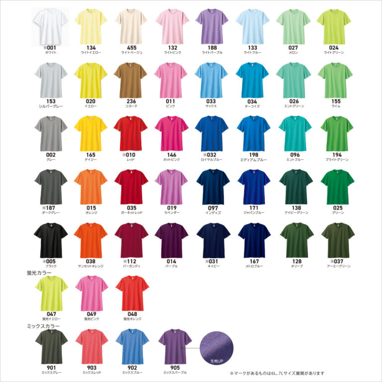 こちらの商品につきましては、一箇所一色プリント(特色以外)の料金が含まれております。その他の条件(特色≪金・銀・蛍光カラー≫プリント、2箇所以上のプリント、2色以上のプリント)に関しては、別途見積の請求をお願い申し上げます。予めご了承下さい。一枚ずつ「商品たたみ袋入れ」にてお届けいたします。袋入れ不要の場合はご連絡頂けましたら若干価格がお安くなります。