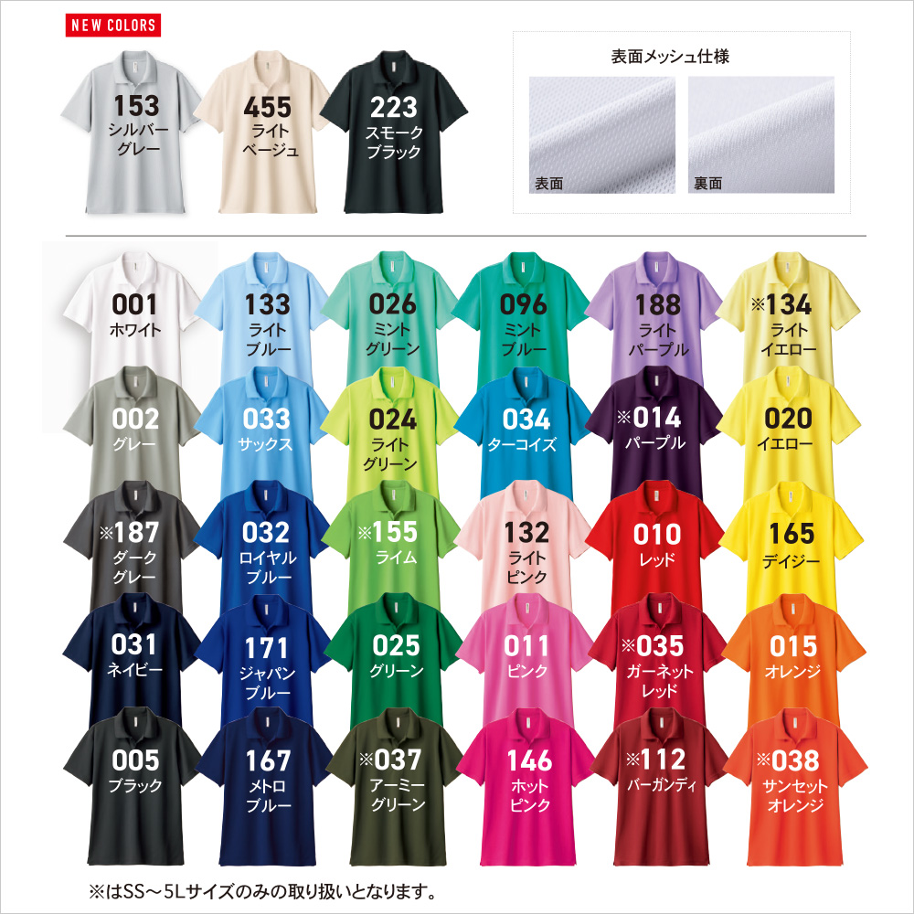 速乾性に優れたメッシュ素材のポロシャツ。真面目な見た目と快適な着用感がひとつになりました。ポケット付のポロシャツもご用意しております。※ミックスカラーは+@242(税込)※3L~5Lは+@165(税込)