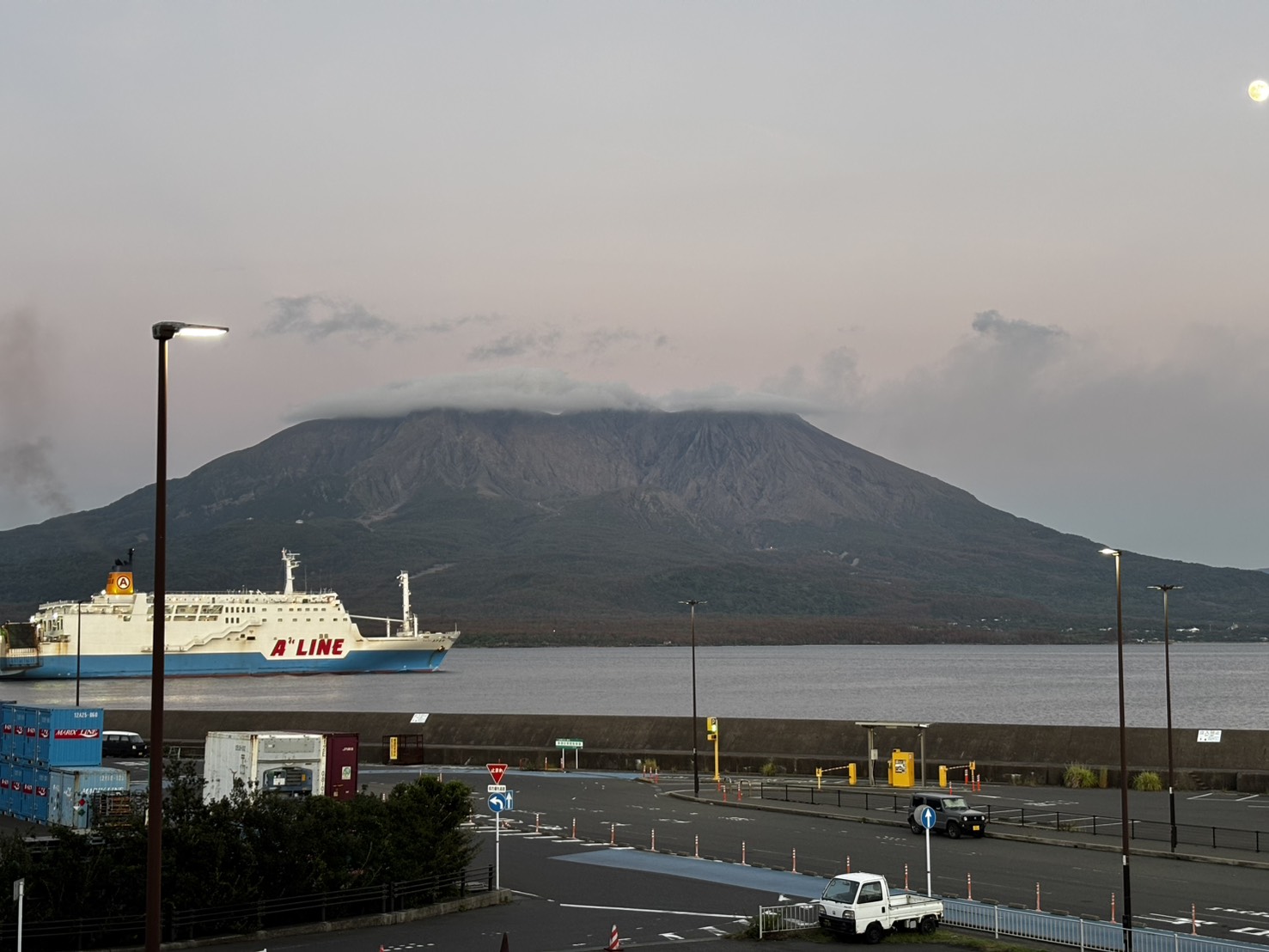 ちょうど桜島と船で綺麗でしたので思わず写真を撮りました。
